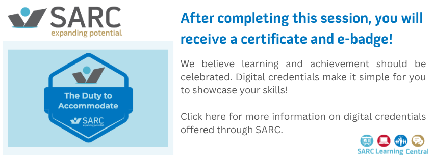 SARC Learning Central’s facilitators can bring this session to your organization! This session can be delivered to a group of employees at your organization in-person or virtually. Contact us today!